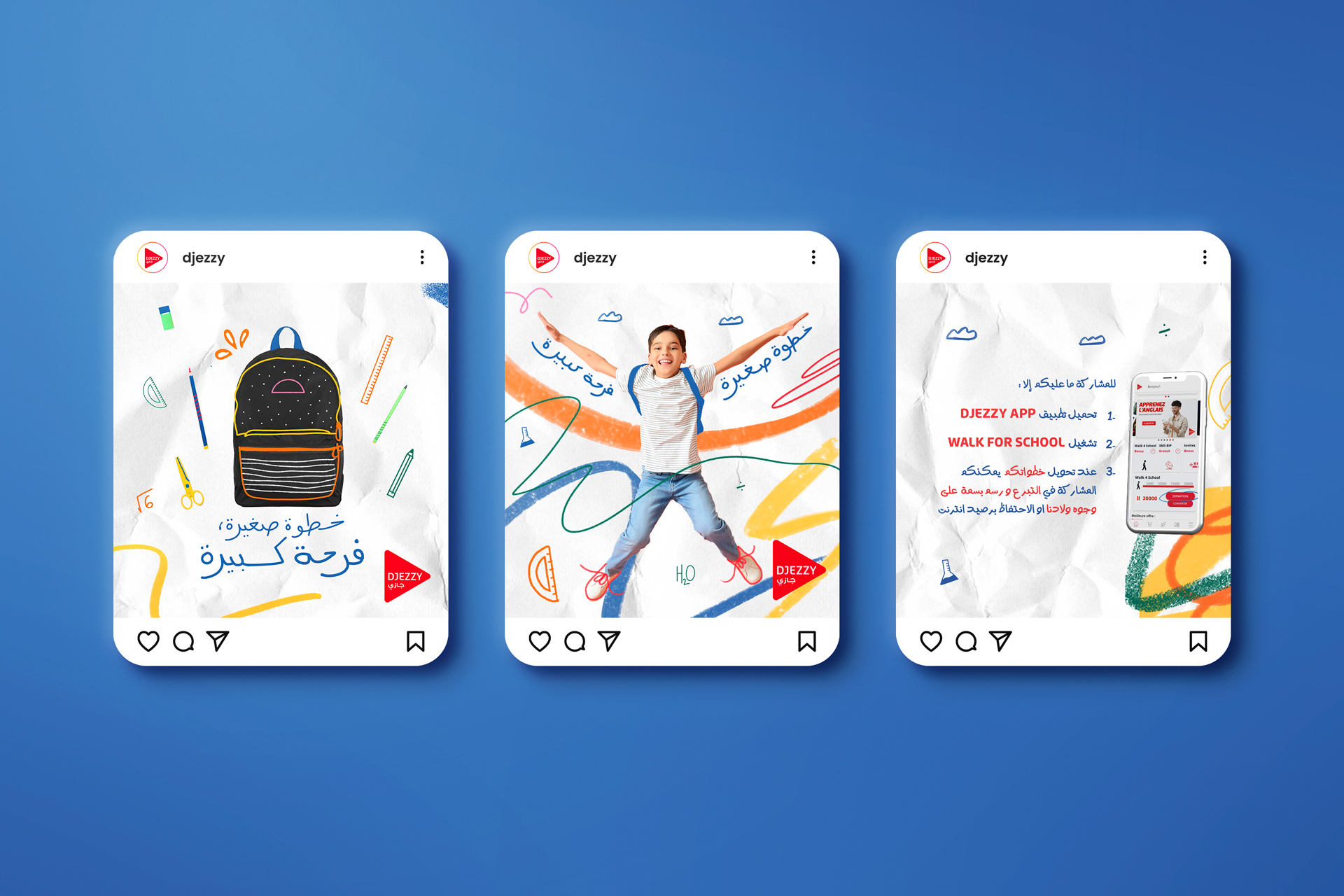 Pour la campagne « Walk for School » de Djezzy, centrée sur la donation de packs scolaires, nous avons créé un contexte de travail vibrant et adapté à l’esprit de la rentrée. L’approche artisanale et faite à la main a été privilégiée, avec la conception de packs scolaires colorés et dynamiques. Chaque élément, depuis les fournitures jusqu’aux emballages, a été conçu avec soin pour refléter l’engagement de Djezzy envers la communauté éducative. L’objectif est de susciter l’enthousiasme et de créer une expérience visuelle mémorable, soulignant ainsi la contribution positive de Djezzy à la rentrée scolaire. La campagne se veut à la fois pratique et esthétique, démontrant ainsi la volonté de Djezzy de faire une différence concrète dans la vie des écoliers.