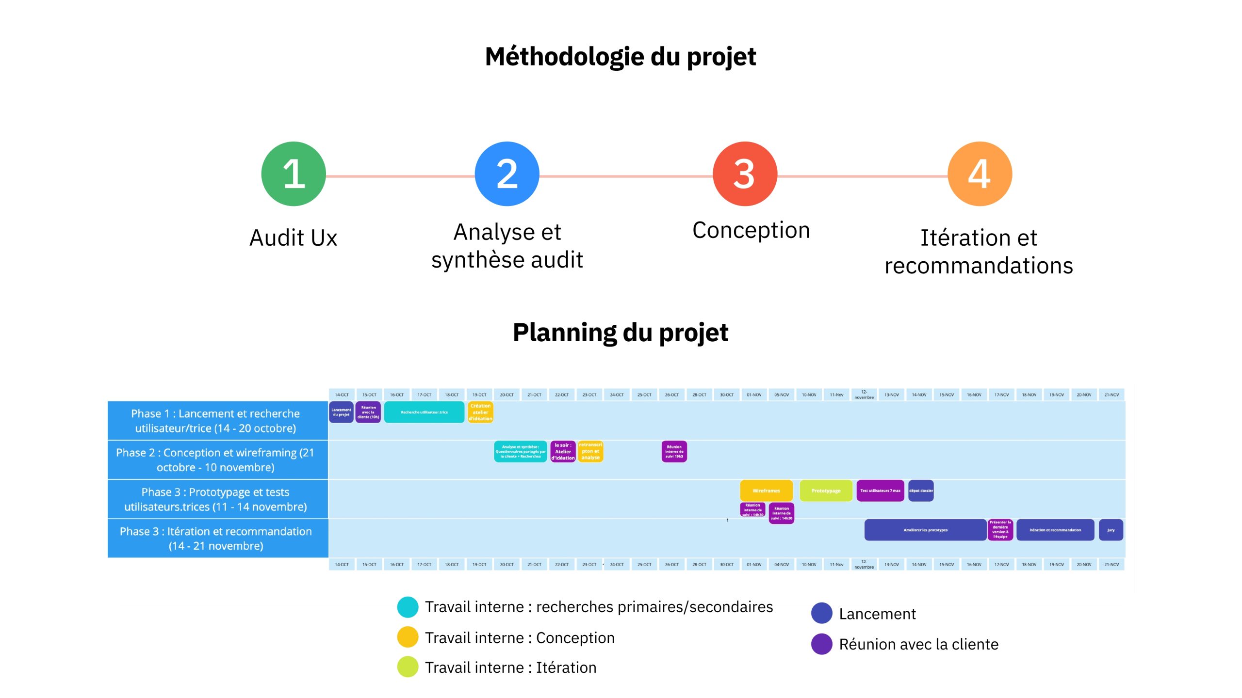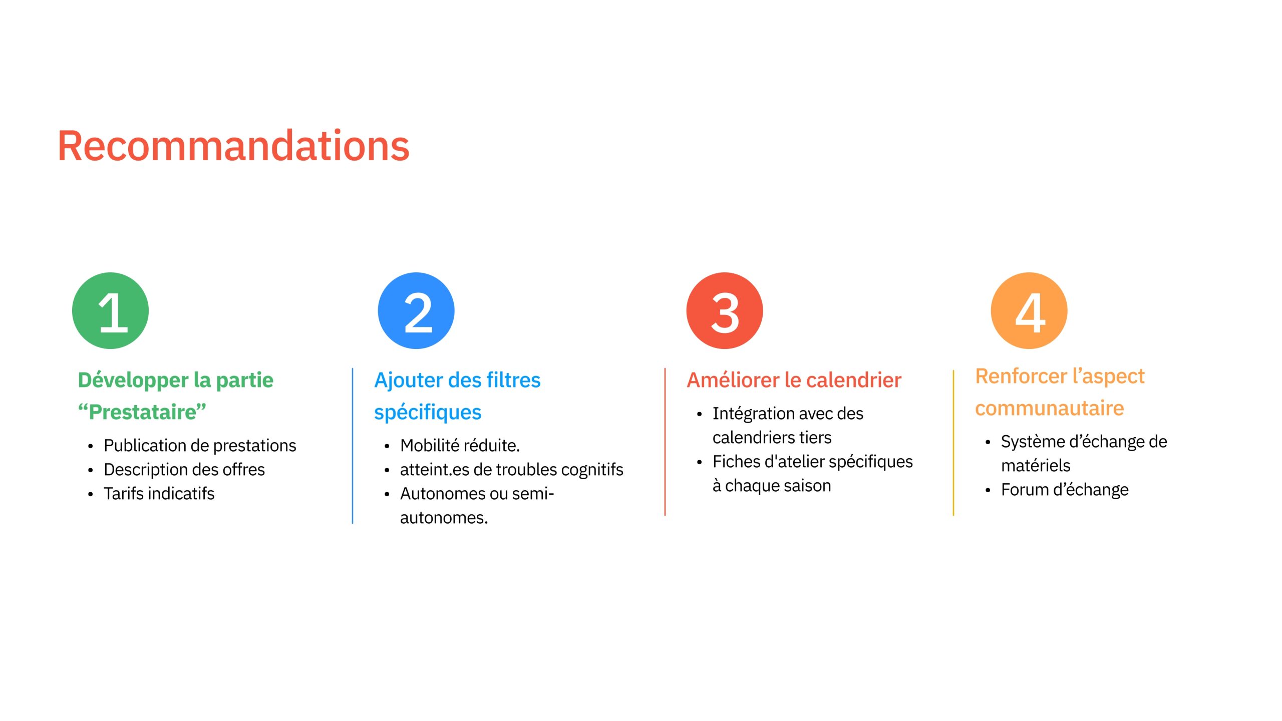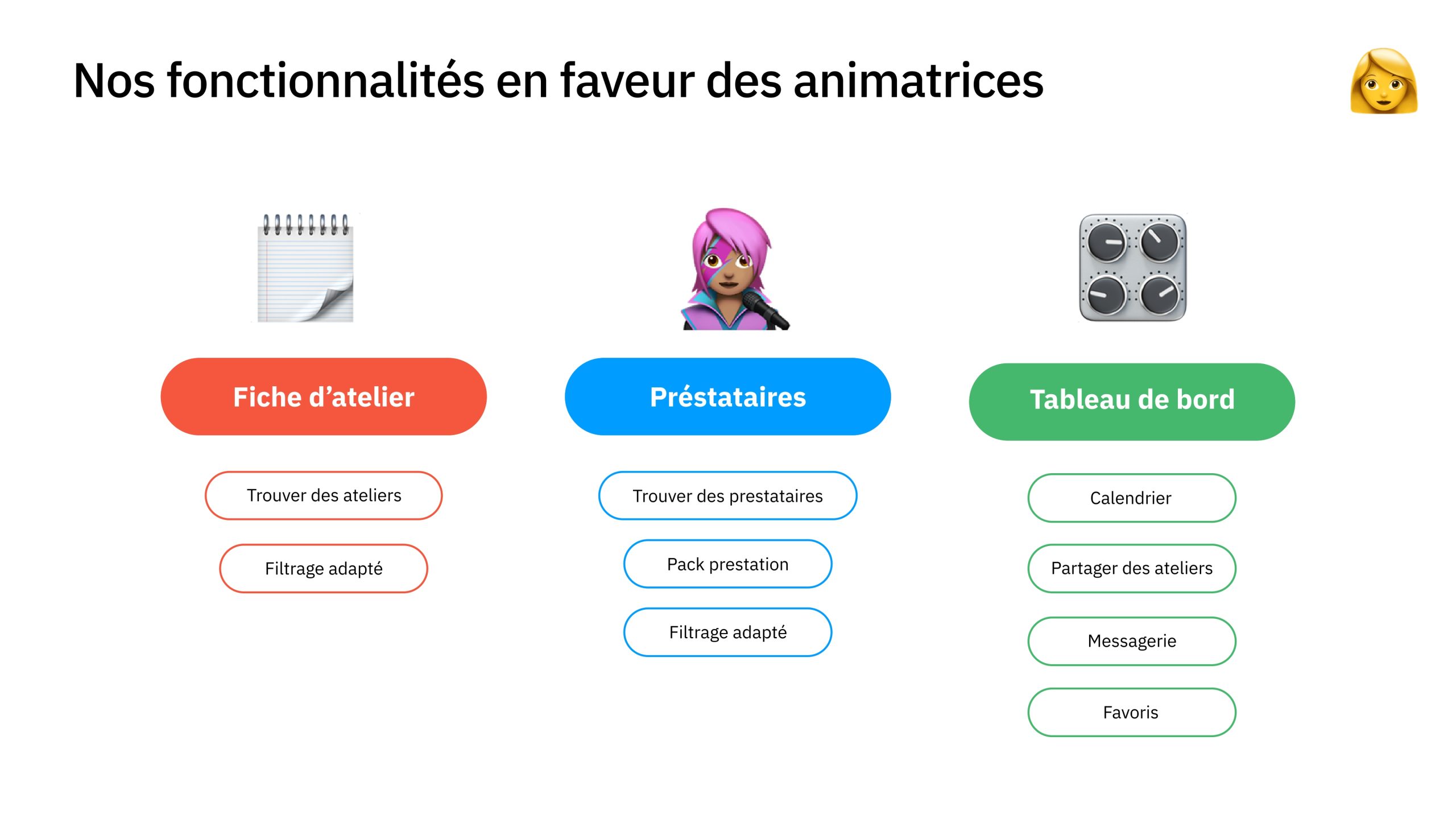 • Recherche Utilisateur : Nous avons mené des recherches primaires et secondaires pour comprendre les besoins des animateurs et des prestataires externes, incluant des questionnaires et des entretiens semi-directifs.