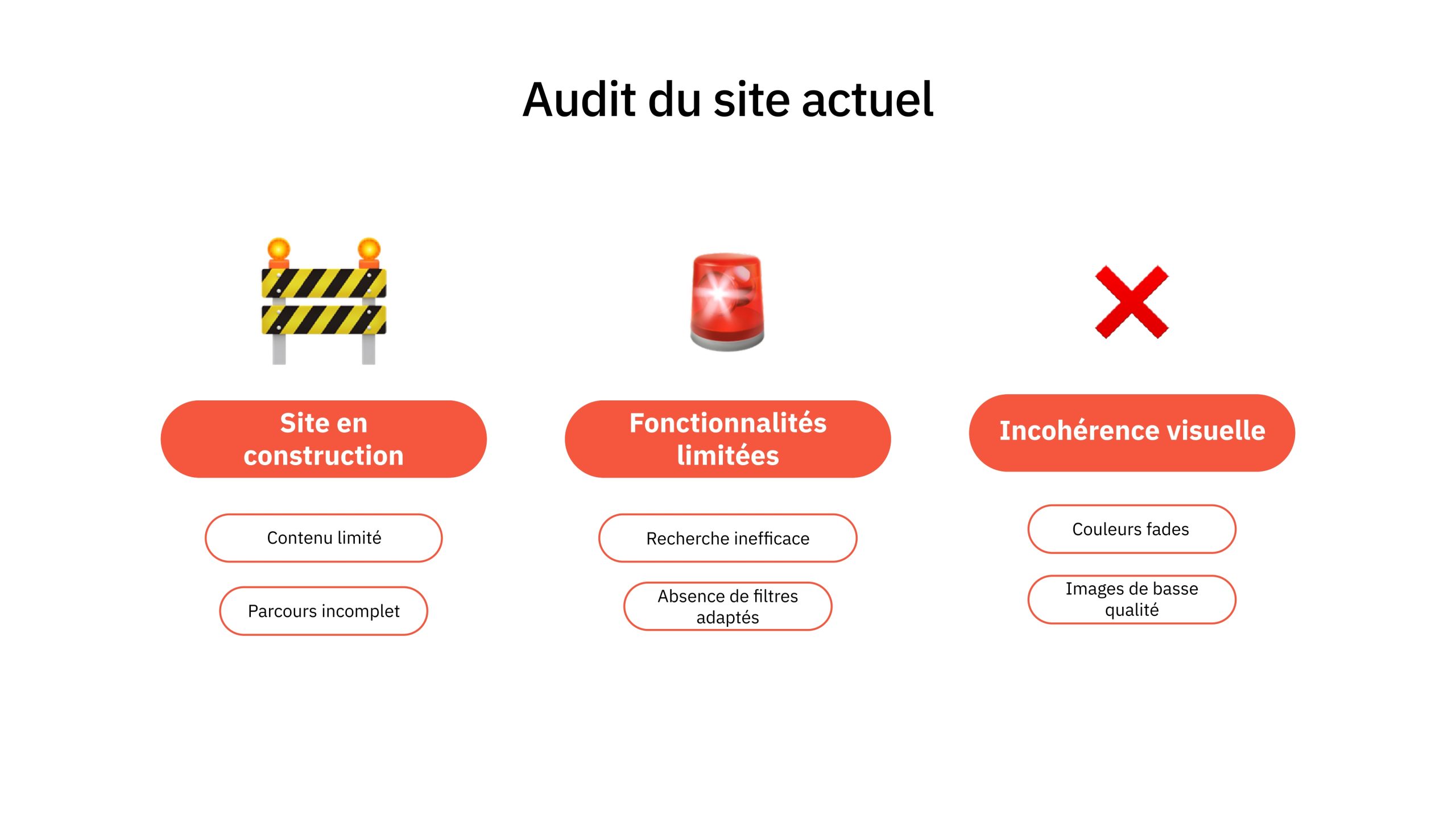 • Analyse des Données : Les points de douleur ont été identifiés, permettant de reformuler le brief initial et de définir des hypothèses claires.