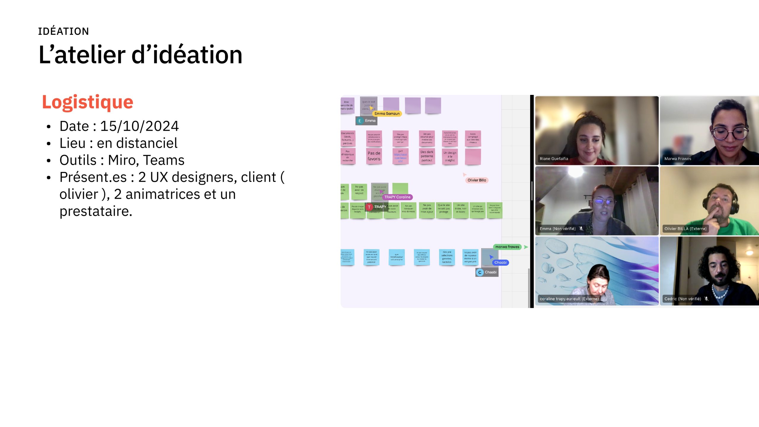 • Idéation et Prototypage : À travers des ateliers d’idéation, nous avons développé des solutions innovantes, suivies par la création de prototypes testés avec des utilisateurs.